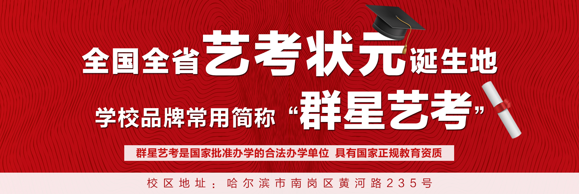 哈尔滨市南岗区群星全明星艺考培训学校坐落在有中国“东方小巴黎”之称的哈尔滨。创办于2009年,现拥有哈尔滨总校区和上海分校区二家艺考教育中心。是以艺考教育为核心,针对艺考生进行专业课、文化课考前培训的艺术教育学校。学校全称“哈尔滨市南岗区群星全明星艺考培训学校”,学校品牌常用简称“群星艺考”。“群星艺考”是国家批准办学的合法办学单位,具有国家正规教育资质,收费标准经哈尔滨市物价局详细审批并备案。依托教育局,严格规范办学,最大限度保证学生和家长利益。